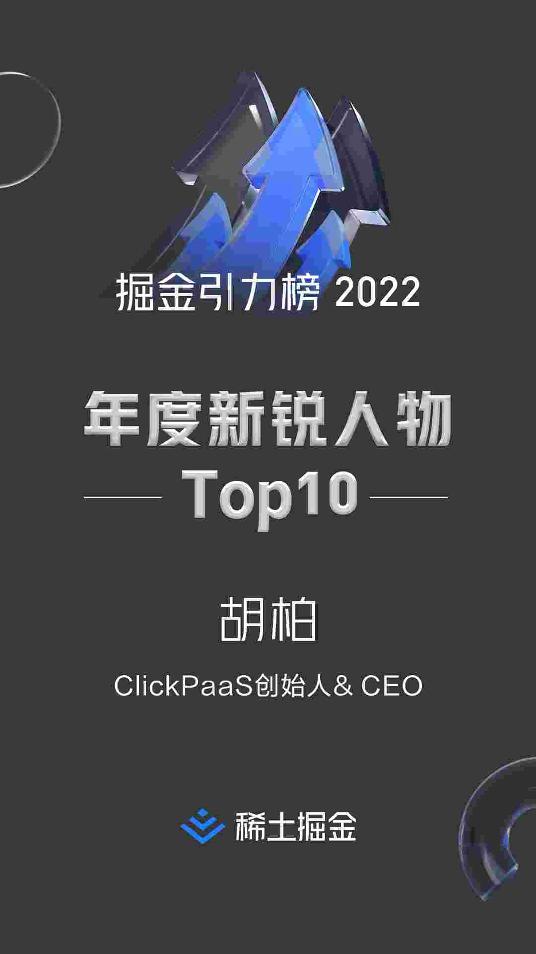 2022年1月6日,,,,稀土掘金社区第一届「掘金未来大会」成功举办,,,会上发布了“2022 稀土掘金引力榜 年度新锐人物”榜单,,上海爱湃斯科技有限公司(简称VIVO钱包)创始人及CEO胡柏实力入选年度新锐人物TOP 10。。。。