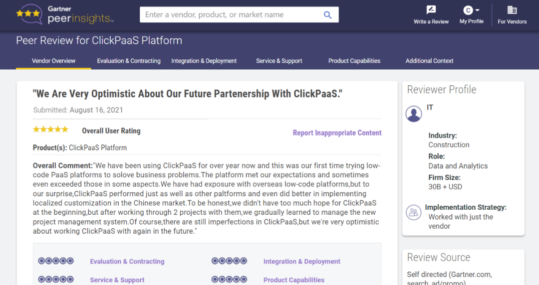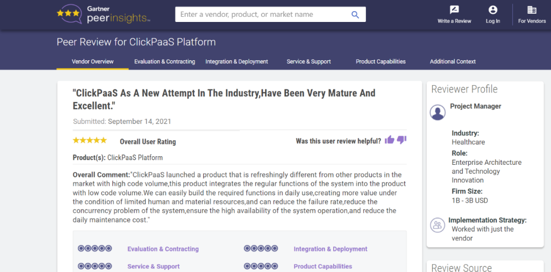 Tips::【Peer Insights】——用户对企业IT产品和服务发布真实评价的平台。。。。目前已有355个市场,,,255,000条经过验证的评价。。。每一条评价Gartner会针对参评企业营收规模及参评人员信息做验证、、、评价内容做多维核实。。。。